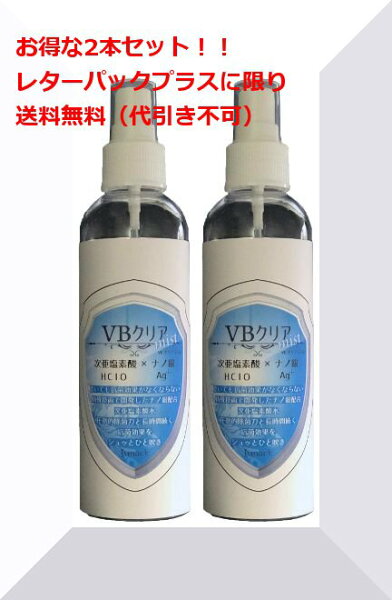 V:ウィルスB:バクテリアまとめて殺菌 VBクリアミスト! 唯一!2大抗菌要素をW配合!驚異の次世代型除菌消臭剤 次亜塩素酸水×ナノAg+ 面倒な希釈などは必要ありません! 次亜塩素酸水が乾いてもVBクリアミストなら抗菌効果が持続! ミネラルウォーターと同じph域(7.0〜7.3)なのに除菌できる!! 銀(Ag)が残留することで菌の繁殖を防ぎます!! ●漂白剤の次亜塩素酸ナトリウム(NaCLO・アルカリ性の次亜塩素酸ソーダ等)ではありません。